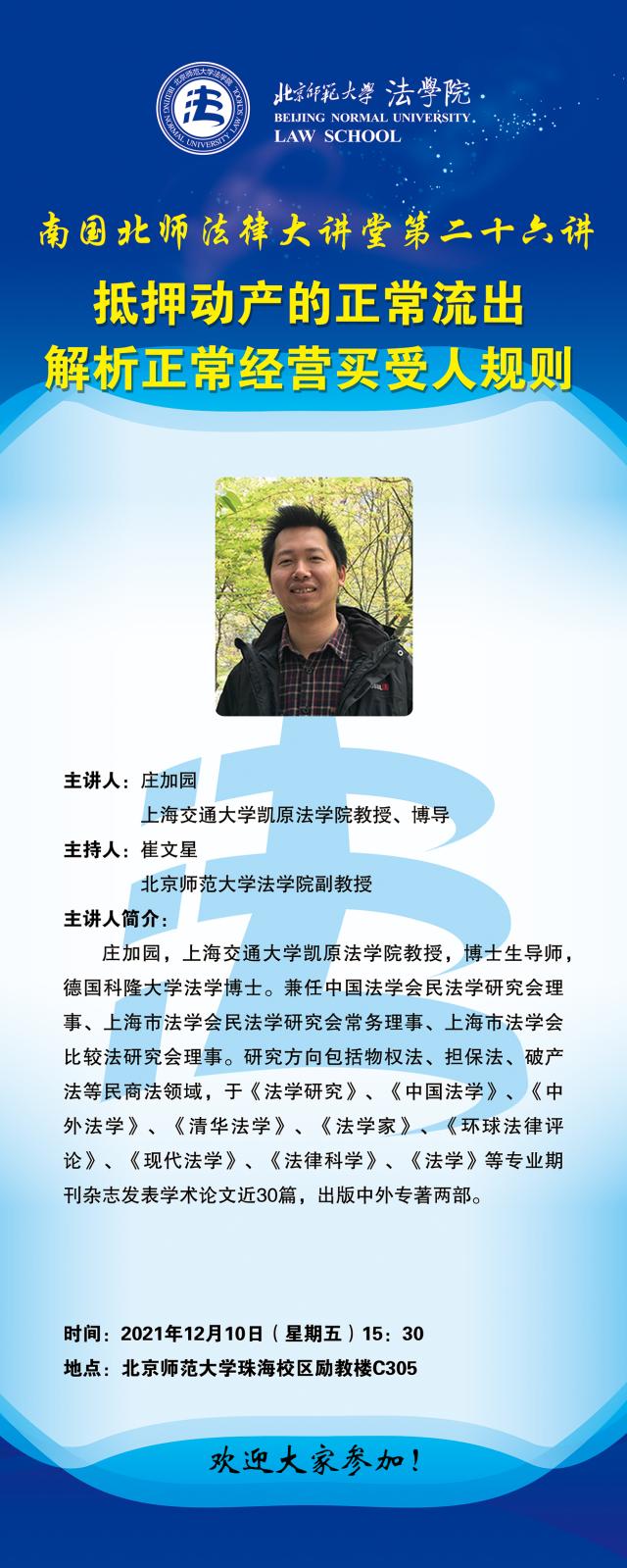 【12.10】南国北师法律大讲堂第二十六讲——抵押动产的正常流出 解析正常经营买受人规则/主讲人:庄加园