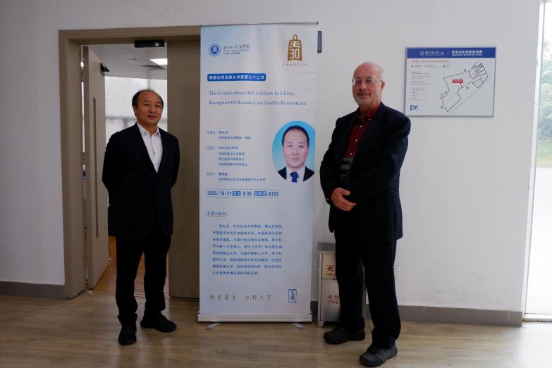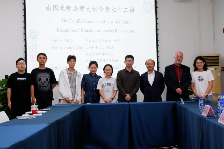 2025年10月31日,南国北师法律大讲堂第七十二讲“中国民法典编纂:罗马法的继受与创新”在日本AV 珠海校区励教楼A103会议室成功举行。本次讲座由华东政法大学教授、博士生导师张礼洪老师主讲,比利时鲁汶大学教授、荷兰皇家科学院院士、比利时皇家科学院院士Alain Wijffels老师与谈,日本AV 法治发展研究中心讲师莫杨燊老师主持。