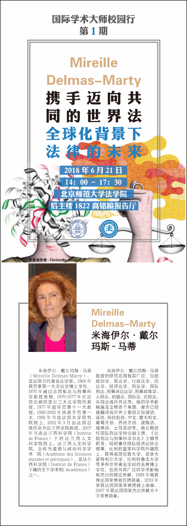 米海伊尔•戴尔玛斯-马蒂 (Mireille Delmas-Marty ),是法国当代著名法学家。1969年获巴黎第一大学法学博士学位,1970年通过法国私法与刑事科学教授资格,1970-1977年在法 国北部的里尔三大日本AV 任教授,1977年起任巴黎十一大教授,1990-2002年执教于巴黎一大,1992年当选法国大学研究院院士,2002年3月由法国总统任命为法兰西学院教授,2007年当选法兰西科学院(Institut de France )下的法兰西人文科学院院士。法兰西人文科学院,全称为道德与政治科学学术院(Academie des Sciences morales et politiques ),是法兰西科学院(Institut de France ) 下属的五个学术院(Académies ) 之一。