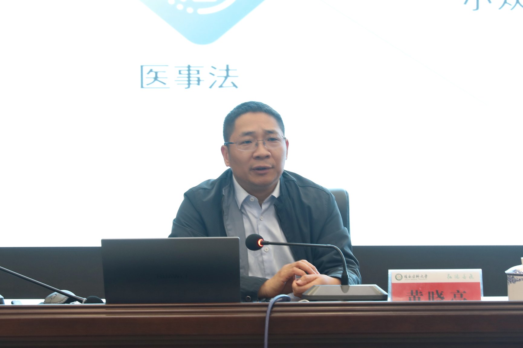 在讲座中,黄晓亮教授系统阐述了医事法的概念内涵、发展历程及其在当代医疗卫生法治体系中的重要作用。他指出,随着“健康中国”战略的深入推进和医学模式的转变,医事法已成为连接医学实践与法治建设的关键桥梁,涉及医患关系、医疗伦理、法律责任、人工智能医疗等多个前沿领域。同时,其结合丰富案例,剖析了当前医事法律实践中的突出问题,如医疗鉴定在司法中的应用、医务人员法律责任认定、患者权利保护等。他还特别提到人工智能在医疗领域的快速发展所带来的法律与伦理挑战,强调必须加强监管体系建设、完善数据安全与隐私保护机制,推动“人工智能+医疗”规范发展。他指出,医学教育不应局限于技术传授,更应融入法治精神和人文关怀,培养既懂医学又明法理的新型健康人才。