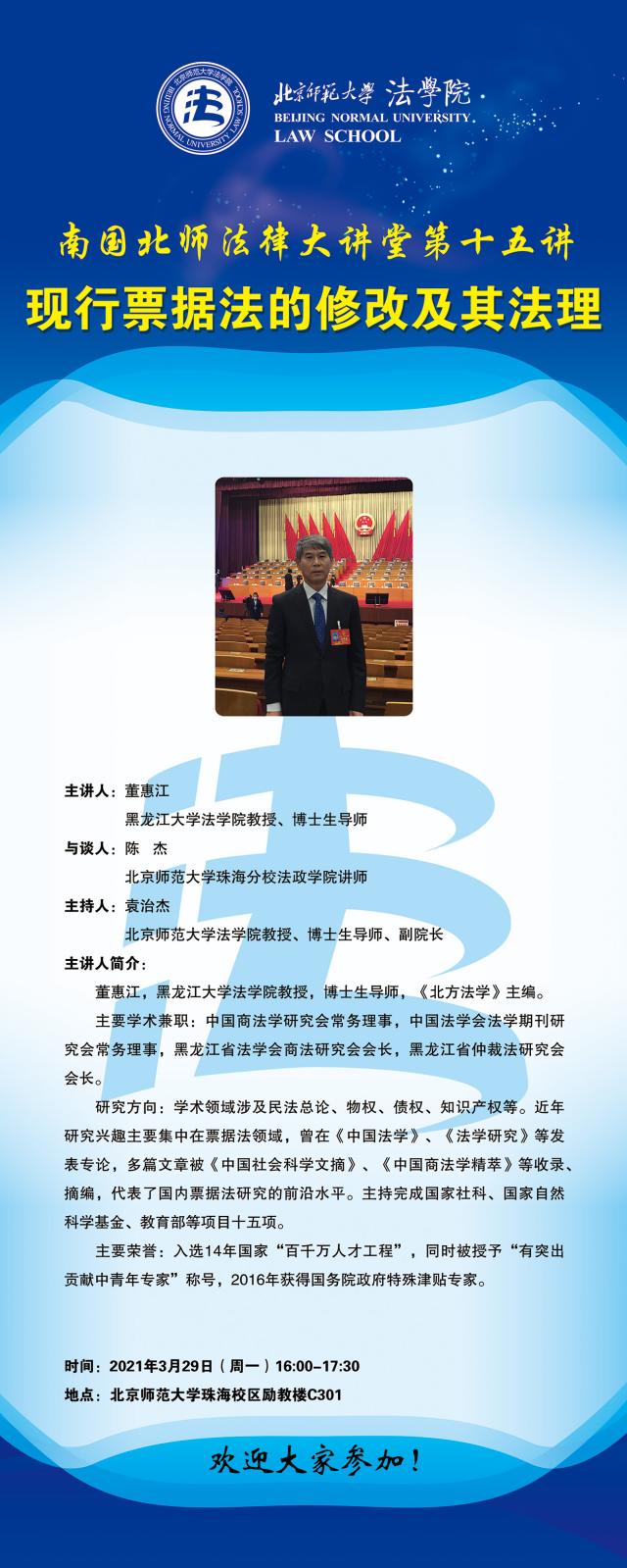 【3.29】南国北师法律大讲堂第十五讲——现行票据法的修改及其法理/主讲人:董惠江