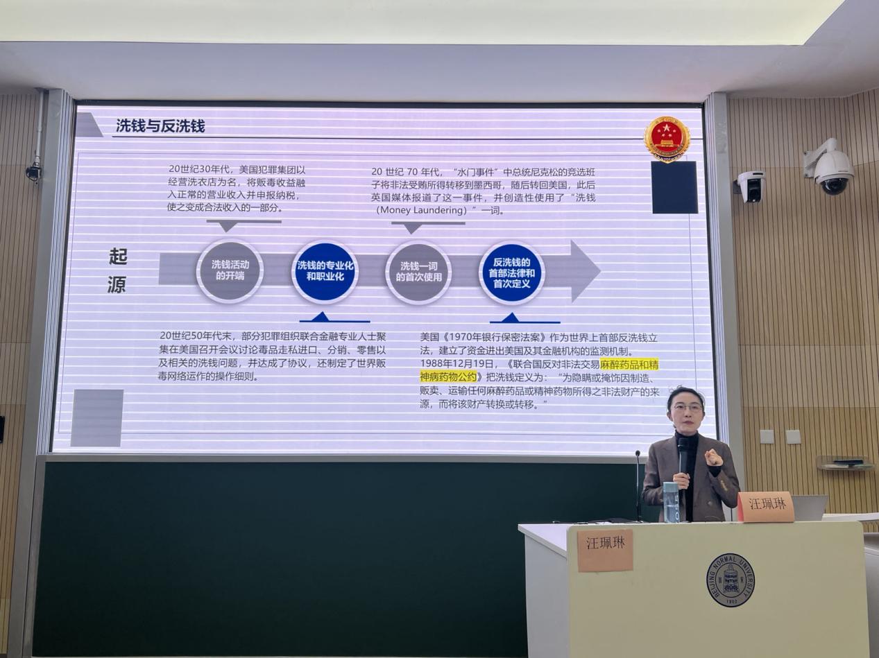 在讲授部分,汪珮琳检察官首先向同学们讲述了洗钱罪的起源、概念、我国反洗钱工作开展过程中所面临的形势等问题,并对我国在金融业监管、打击犯罪等方面反洗钱工作的现状进行了介绍。此外,汪珮琳检察官又从刑法修改的角度向同学们介绍了我国当前关于洗钱犯罪的刑事立法体系。随后,汪珮琳检察官从认定洗钱罪的核心原则这一角度出发,针对洗钱行为的认定、上游犯罪的范围及认定、帮助洗钱与上游犯罪共犯的区分等多个洗钱犯罪案件中的司法认定疑难问题,为同学们进行了详细讲解。在这一过程中,汪珮琳检察官通过列举典型案例并提出问题的方式,与同学们进行了深入的交流与互动。