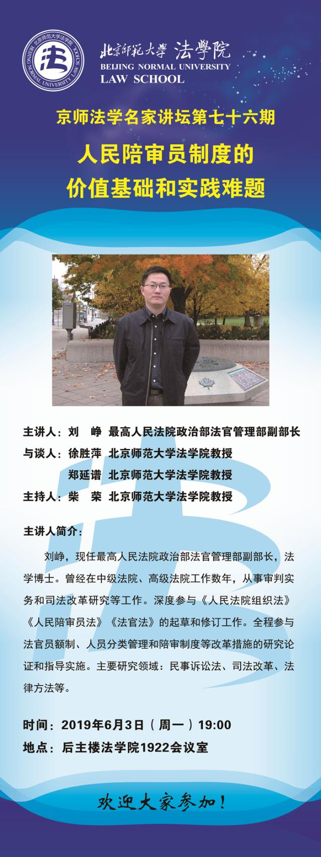 【06.03】京师法学名家讲坛第七十六期:人民陪审员制度的价值基础和时间难题/主讲人:刘峥