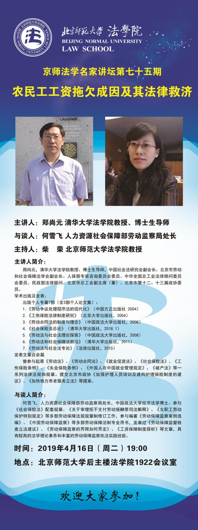 【04.16】京师法学名师讲坛第七十五期/主讲人:郑尚元