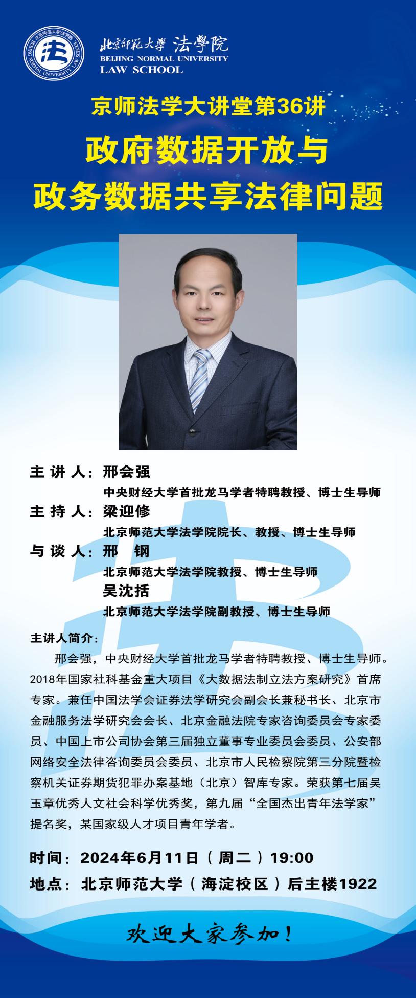 6月11日,由日本AV 举办的题为“政府数据开放与政务数据共享法律问题”的讲座,在日本AV 后主楼1922室学术报告厅隆重举行。本次讲座邀请了中央财经大学日本AV 邢会强教授作为主讲人,日本AV 院长梁迎修教授作为讲座主持人,日本AV 邢钢教授和吴沈括副教授以及日本AV 社会学院赵秋雁教授作为与谈人参加讲座。讲座还吸引了诸多学者和学生热情参与。