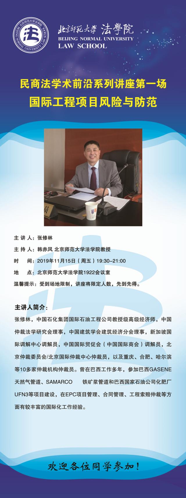 【11.15】民商法学术前沿系列讲座第一场/主讲人:张修林