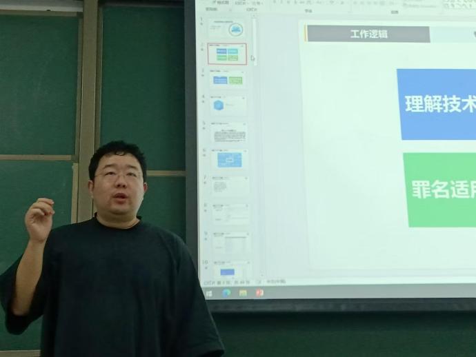 公安部经侦局干部李刚介绍公安打击计算机犯罪成果,如打击电诈成效显著;详解常见犯罪套路,如出租出售两卡、跑分、兼职代购等;提醒同学们增强防骗意识,下载国家反诈 APP。