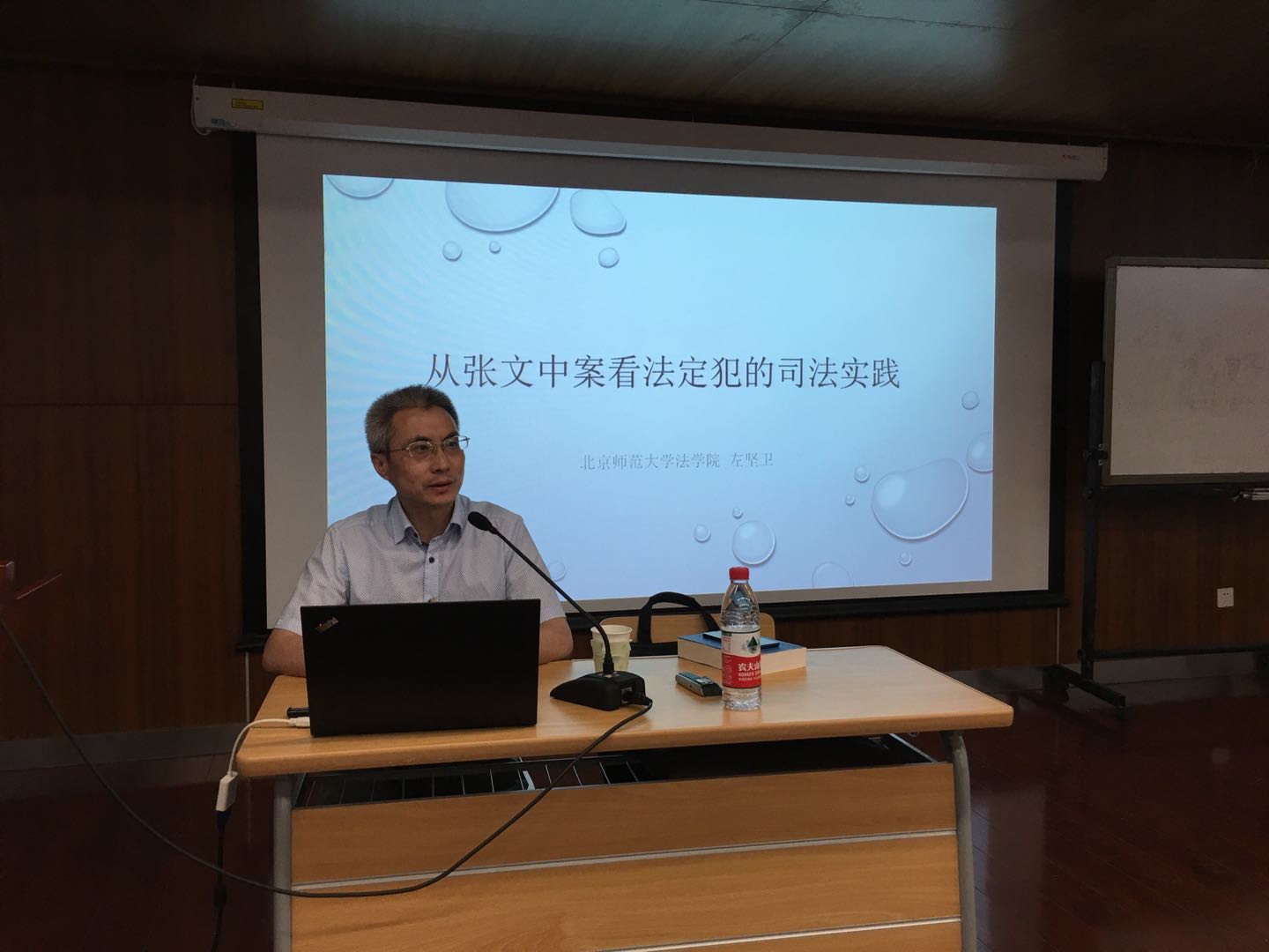 刑法学教研中心主任左坚卫教授于2018年7月7日出席南开大学“法定犯的基本理论与前沿问题研讨会暨刑法暑期班第三期”学术会议,并为暑期班学员作了题为“从张文中案看法定犯的司法实践”的学术讲座。