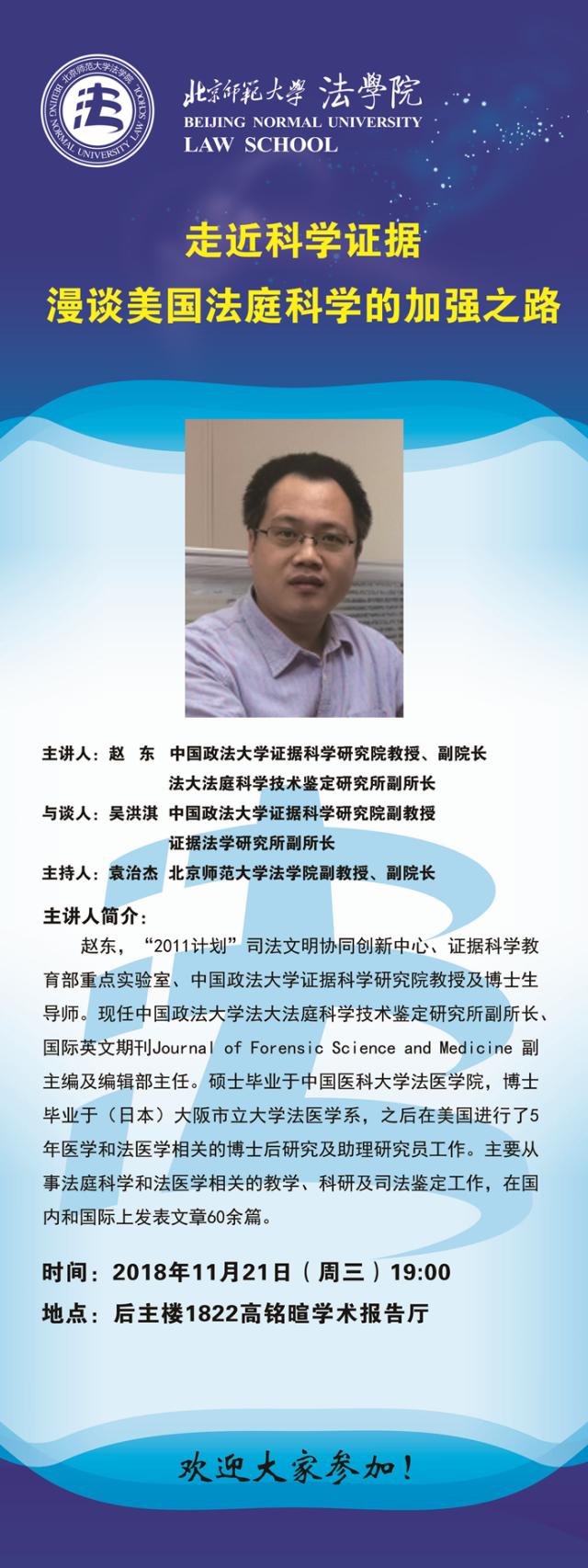 【11.21】走近科学证据---漫谈美国法庭科学的加强之路/主讲人:赵东