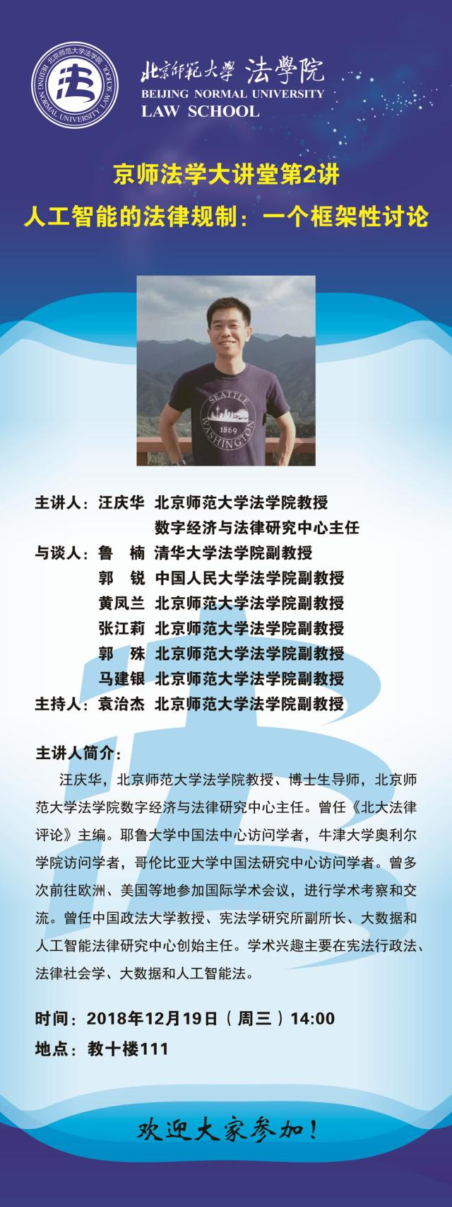 【12.19】京师法学大讲堂第2讲---人工智能的法律规制:一个框架性讨论/主讲人:汪庆华