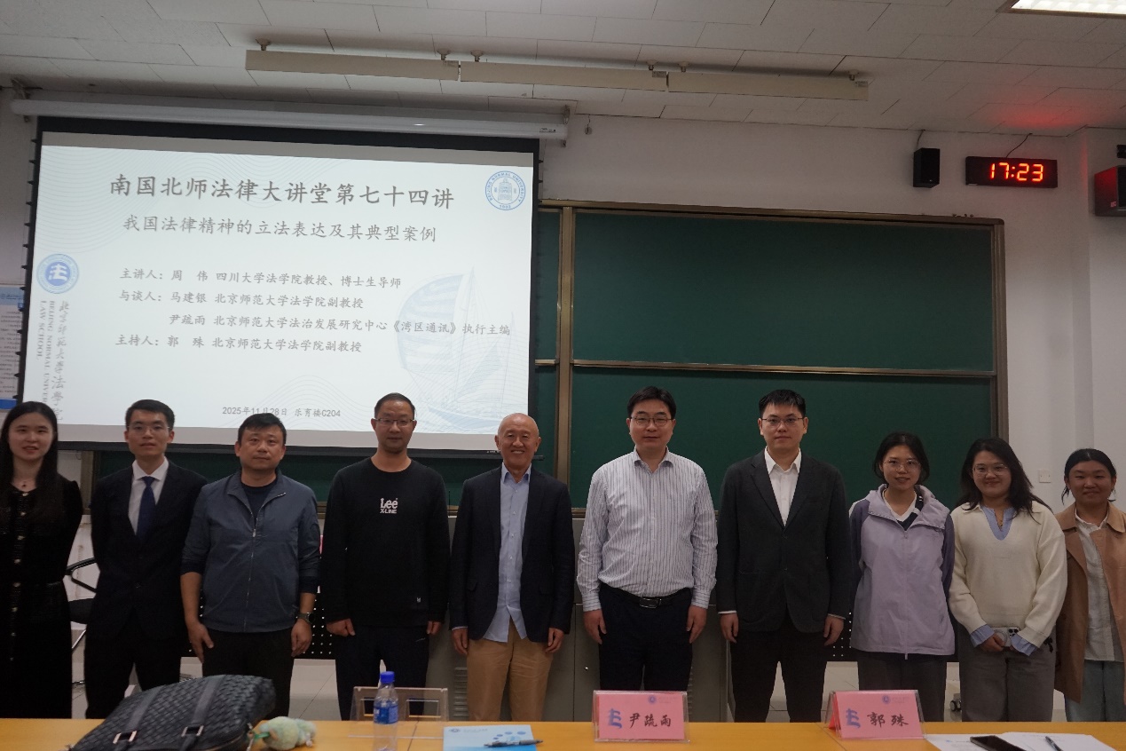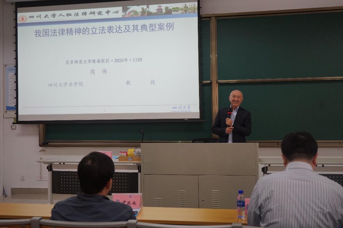 11月28日,南国北师法律大讲堂第七十四讲“我国法律精神的立法表达及其典型案例”在日本AV 珠海校区乐育楼C204教室圆满举行。本次讲座由四川大学日本AV 教授、博士生导师周伟老师主讲,日本AV 副教授马建银老师、日本AV 法治发展研究中心《湾区通讯》执行主编尹疏雨老师与谈,日本AV 副教授郭殊老师主持。