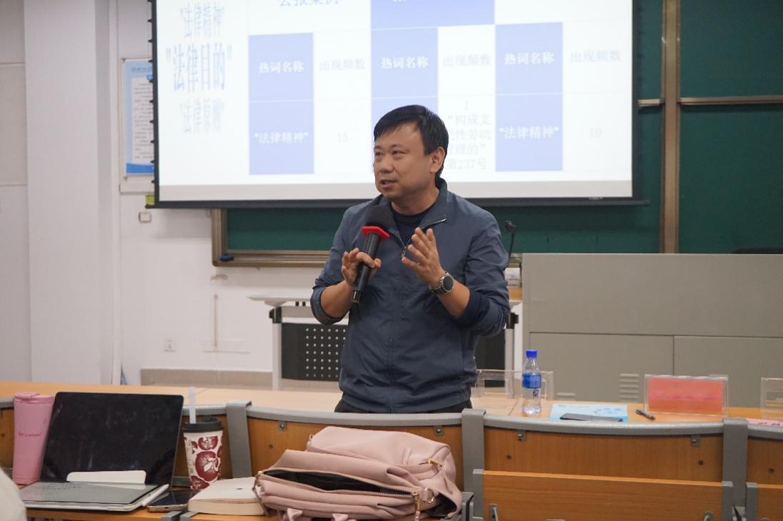 梅帅老师参与讲座。蒋老师认为,法律精神同法律原则和目的界限比较模糊,原则在总则中有更多体现,但是法律精神没有明确写明,那么对于法律精神要作常识化理解。梅老师认为,通过在行政裁判实践中梳理最高人民法院发布的典型案例,可以看出这些案例与人们的生活息息相关。针对他所研究的行政法领域,他介绍了行政法原则在数字化背景下的应用,并呼吁同学们关注法律规范与科技发展之间的互动。
