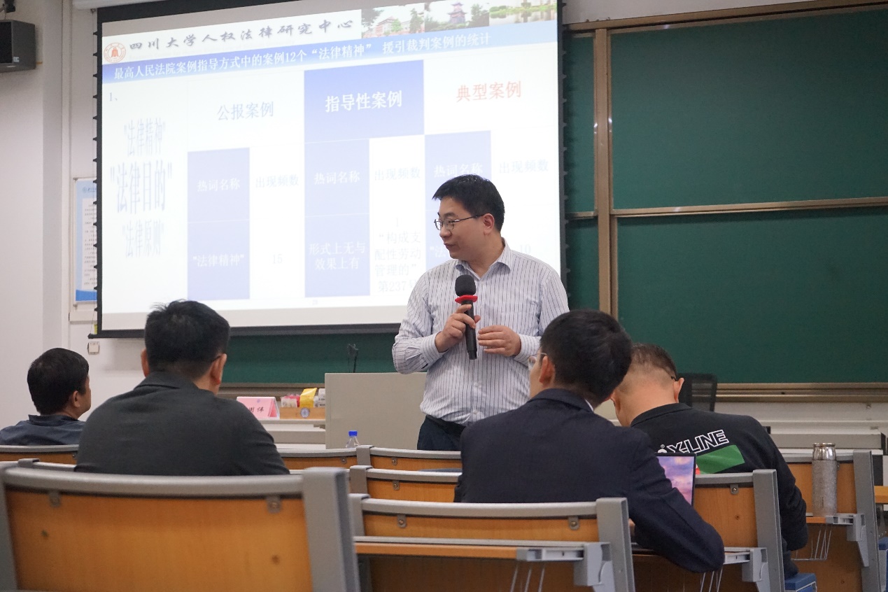 周教授结合了最新反家暴相关法律规定,列举网络著作权保护、滥用政府信息权等典型案例,指出当没有明确可适用的法律条文时,援引法律精神裁判已在实践中广泛应用 —— 诸多指导案例、公报案例及典型案例均采用这一方式,且此类案例对各级法院、检察院具有约束力,可直接作为案件处理的参考。他进一步归纳,统一法律适用机制主要包括司法解释和典型案例两类;同时提到一种特殊裁判情形:即便有明确法条规定,但适用该规定会导致裁判不公时,也可援引法律精神判案。周教授强调,这一做法属于常态中的例外,旨在弥补法律规定可能存在的漏洞,足见法律精神在填补规则不足方面的重要作用。