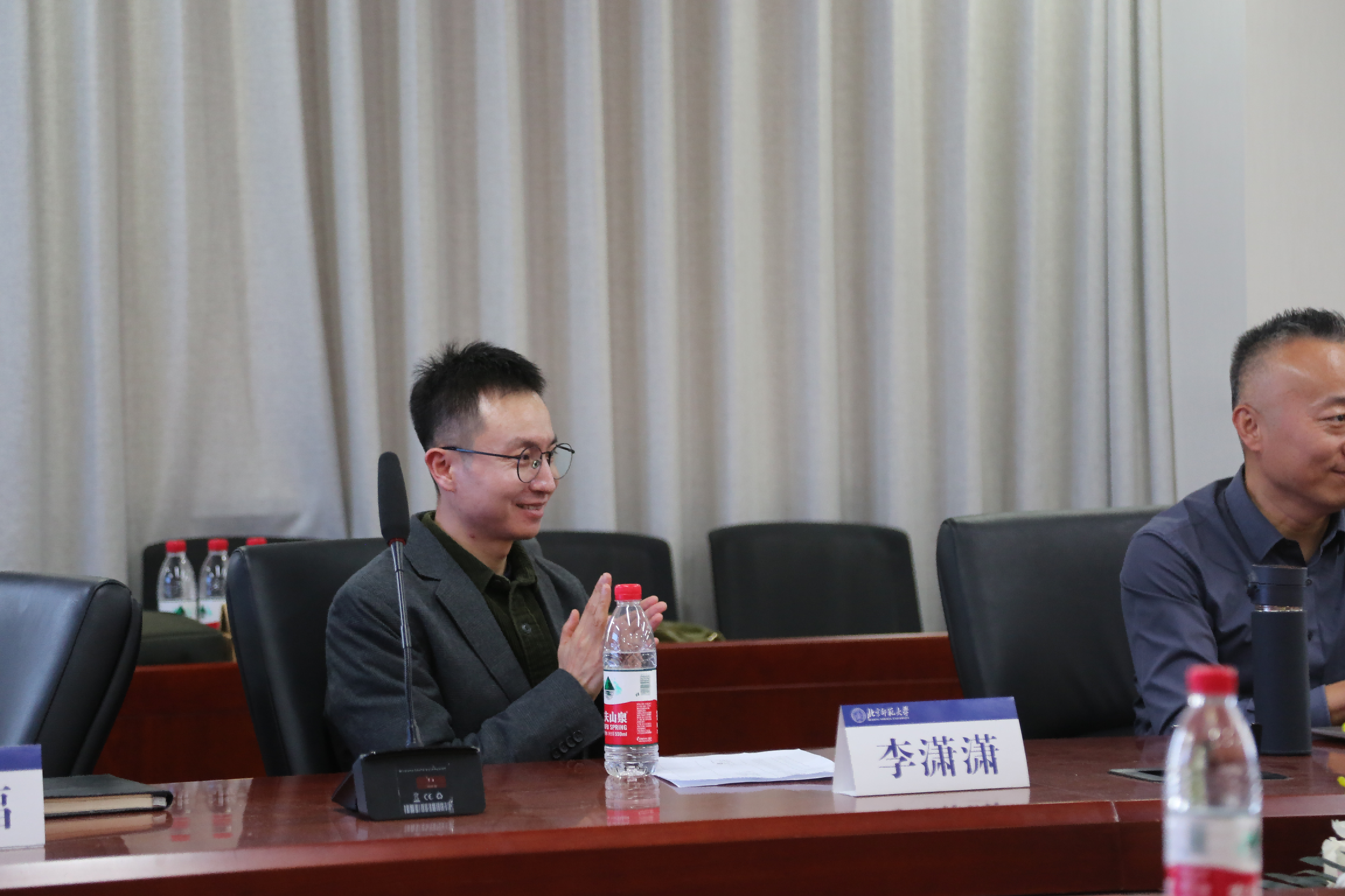 严厚福老师首先介绍了李潇潇老师在教学方面取得的成绩。李潇潇老师获得2021年北京高校第12届青教赛文科类A组三等奖;2022年日本AV 珠海校区首届青教赛文科组一等奖;2023年日本AV 第18届青教赛研究生教学文科组一等奖、最佳课程思政奖、最佳语言奖等荣誉称号。但正所谓“金杯银杯不如学生的口碑”,李潇潇老师的课深受学生欢迎,这才是他教学水平的真正体现。