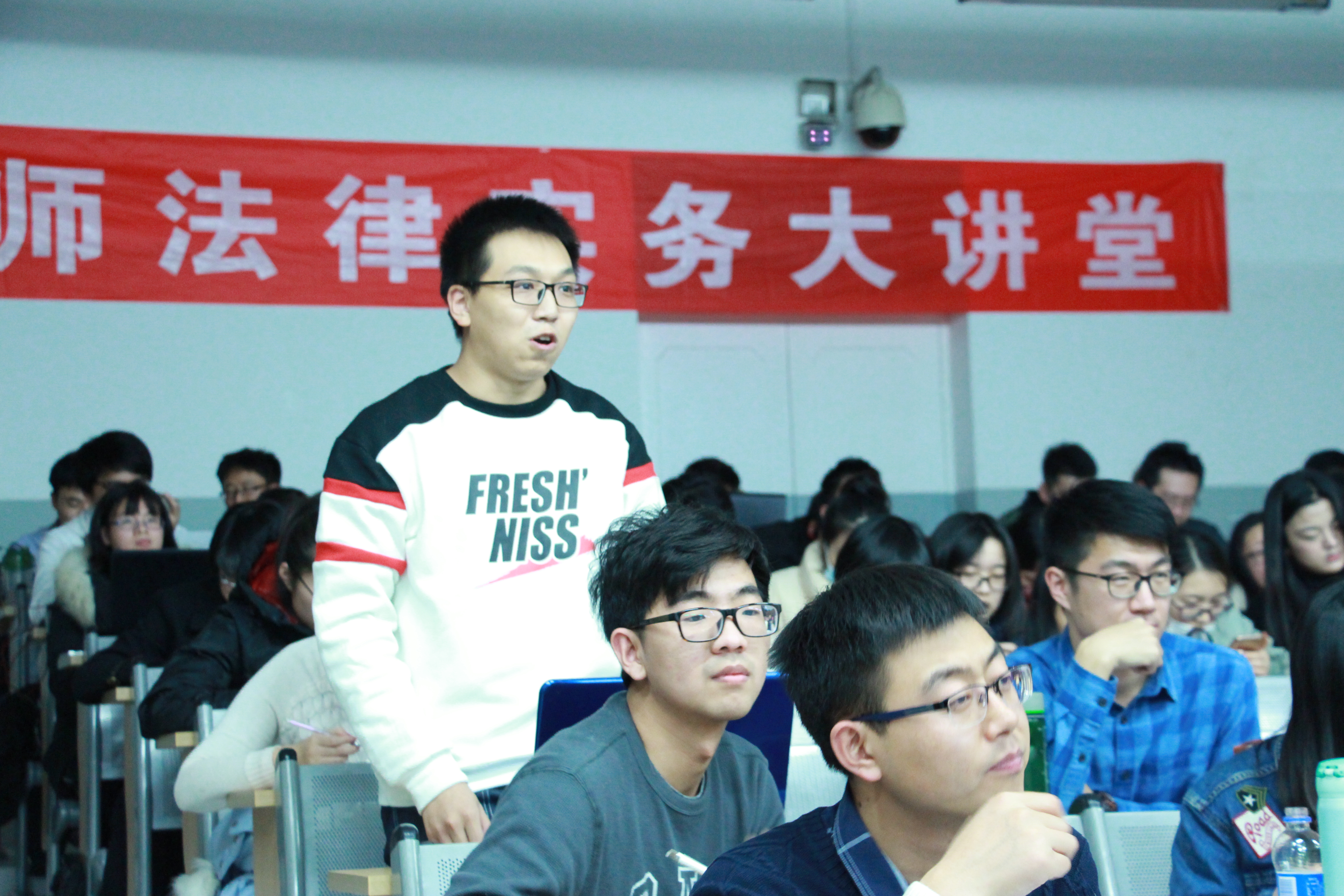 在讲座互动环节,熊定中律师认真的倾听学生提问,并做了精彩的讲解。