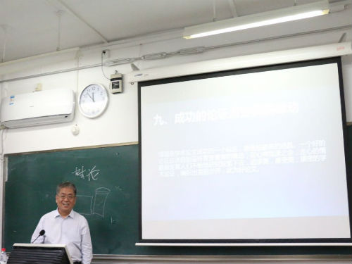 讲座在梁迎修副院长致词后正式开始。孙培福教授的讲座内容分为上下两篇,上篇讲“会写学术论文”,在该篇中,孙培福教授用风趣幽默的语言为老师同学们讲述了写学术论文切忌的五点:写论文不是做八股、写论文不是写讲稿、写论文不是写书、写论文不是堆积建筑材料、论文不是拍脑袋瓜拍出来的。孙教授用了一个生动的例子讲述如何写论文,即会写情书就会写论文,写论文时一定是有感而发,用最诚挚的心去表达自己的真知灼见,并指出好论文应具有明确性、周密性和有序性三个特点。下篇讲“如何写好学术论文”,孙培福教授从如何选题到对文章的论证方式,以及如何使学术论文写的有情趣都进行了详细的讲述,指出了老师和同学们在平时写文章时经常遇到的问题,在场的老师和同学频频点头回应。对于这些问题,孙培福教授的解答更是让老师同学们豁然开朗。