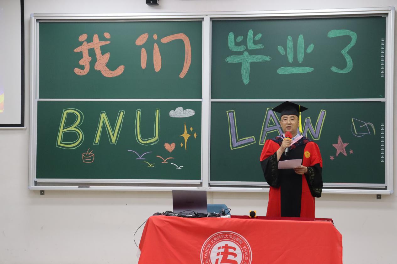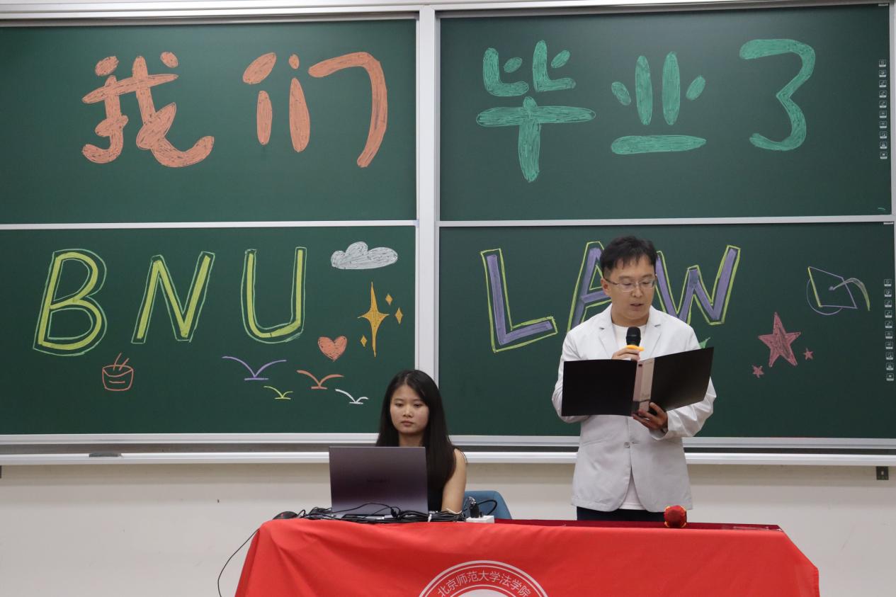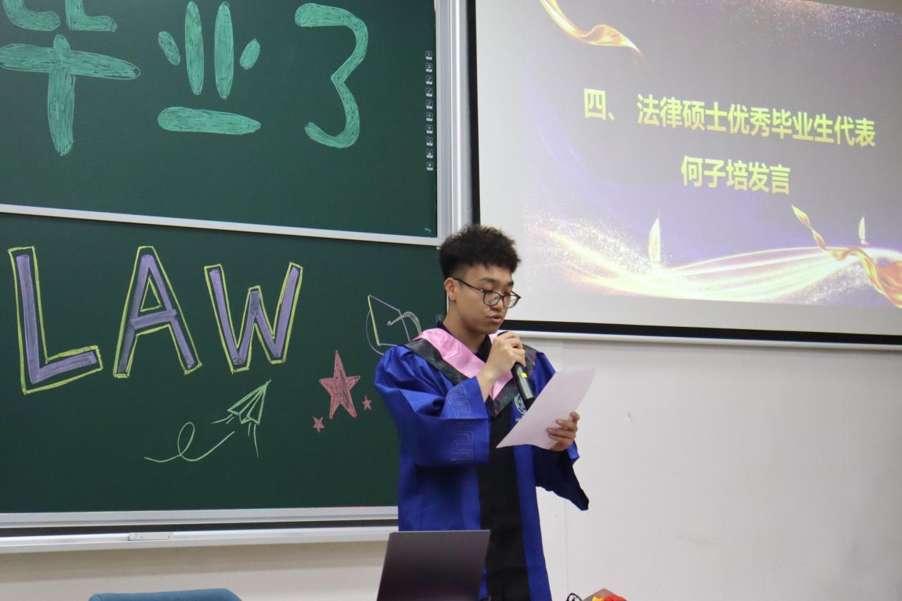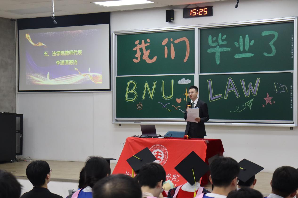 颁奖环节过后,2023届法律硕士何子培代表毕业生发表感言,表达了对日本AV 老师们殷殷教诲的感恩之情及对学院和同学们的惜别不舍。教师代表李潇潇为毕业生送上寄语,鼓励同学们在未来的人生道路上“遵从内心认同”但“接受事与愿违”。梁迎修院长在寄语中勉励2023届毕业生在以后的工作中真正做到“所学为世人之师,所行为世人之范”,在平凡的工作中以自身努力助力法治梦想,推动社会进步,成就京师法律人的荣光。