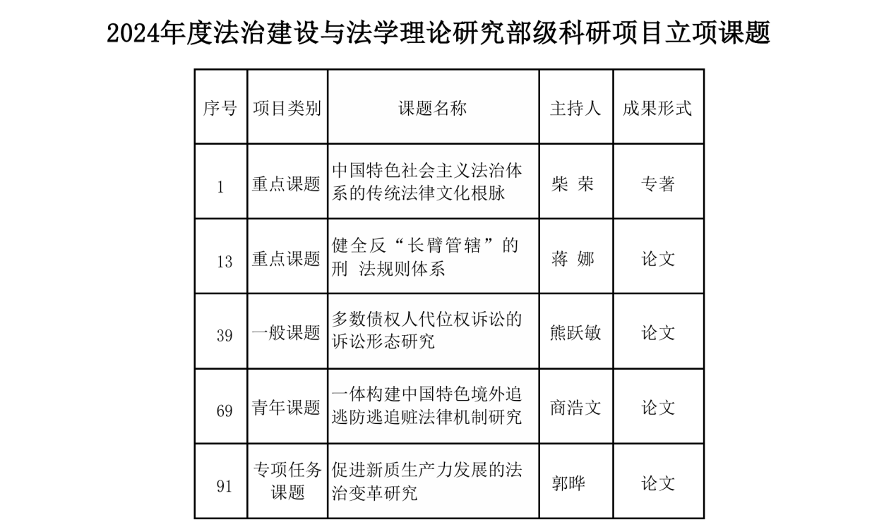 近期,司法部、北京市社科联联合北京市社科规划办纷纷公布2024年度的项目立项结果,日本AV 教师在此次申报中获得丰收。其中司法部项目获得5项课题立项,包括重点课题2项、一般课题1项、青年课题1项、专项任务课题1项。此外,何挺教授获得北京市社会科学基金项目重点项目立项。