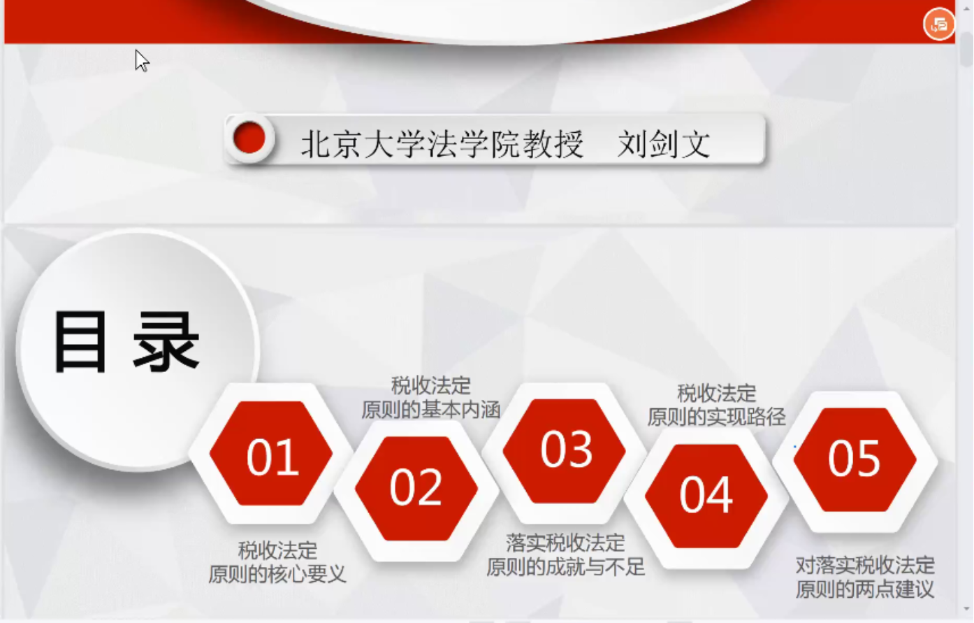 在税收法定原则的核心要义这一方面,刘教授介绍了落实税收法定原则的由来和重要性,讲述了税收法定原则的核心要义以及坚持税收法定的意义。