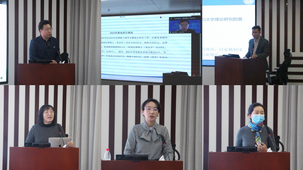 会上,院长梁迎修首先对学院改革发展情况进行全面汇报。学院在第五轮学科评估中取得A-的成绩,学院人才培养、科学研究、学科建设和社会服务稳步发展。梁迎修强调,在新的一年中,学院将时刻牢记职责使命,持续服务师生、关爱师生,并结合当下工作的新形势、新特点,不断完善工作方法,统筹好学院各项工作,奋力开创京师法学学科建设发展的新局面!