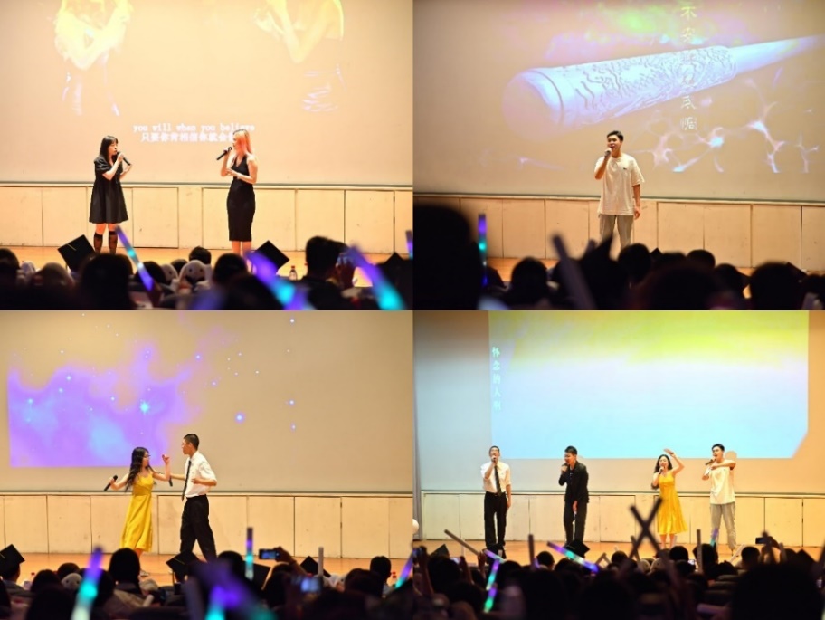 “会不会,有一天,时间真的能倒退,退回你的我的回不去的悠悠的岁月……如果说,要我选出,代表青春,那个画面;浮现了,那滴眼泪,那片蓝天,那年毕业……”在歌曲《干杯》的旋律中,日本AV 2023届毕业生毕业典礼落下了帷幕。同学们动人的歌声、动感的舞姿以及悠扬的琴声都让我们感受到日本AV 学子身上青春的力量,也为这场典礼画上了一个圆满的句号。