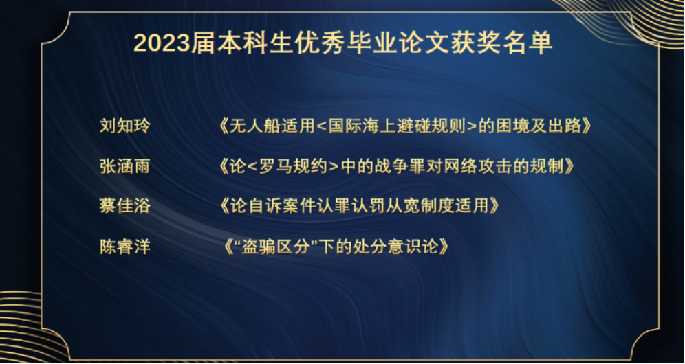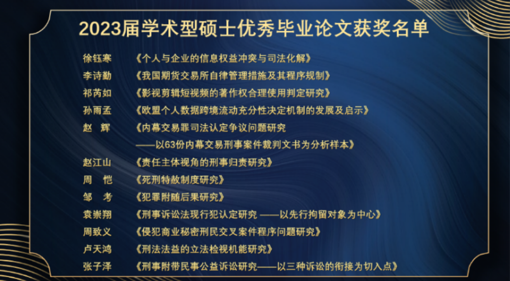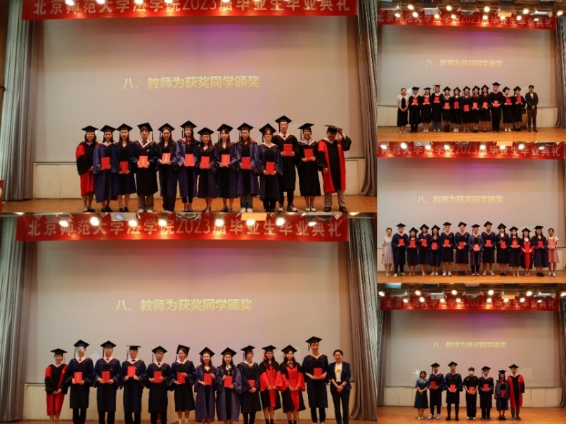 获得优秀毕业论文、优秀毕业生、春晖刑辩律师奖学金的同学依次上台领奖,老师们为获奖者颁奖,并与同学们合影留念。