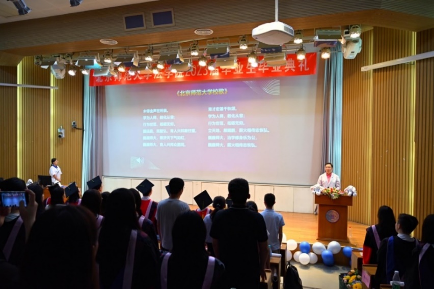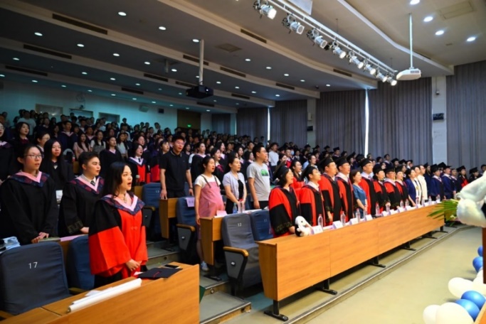 在典礼开始前的暖场视频中,校园里的熟悉场景、同学们学业生活的点滴记录、老师们的殷切嘱托唤醒了同学们对美好校园生活的回忆,为同学们的毕业典礼奏响了温暖的前奏。