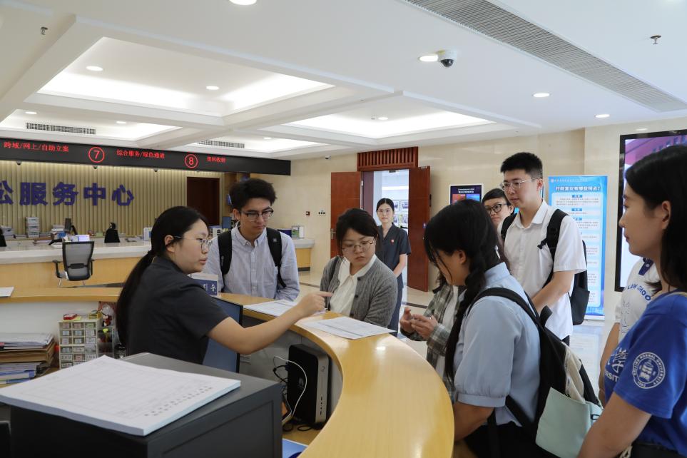 活动伊始,工作人员带领同学们参观了法院的办公场所,并向同学们演示了线上立案平台、粤港澳跨境调解平台的操作流程,展示了现代科技在司法领域中的应用场景与独特优势。