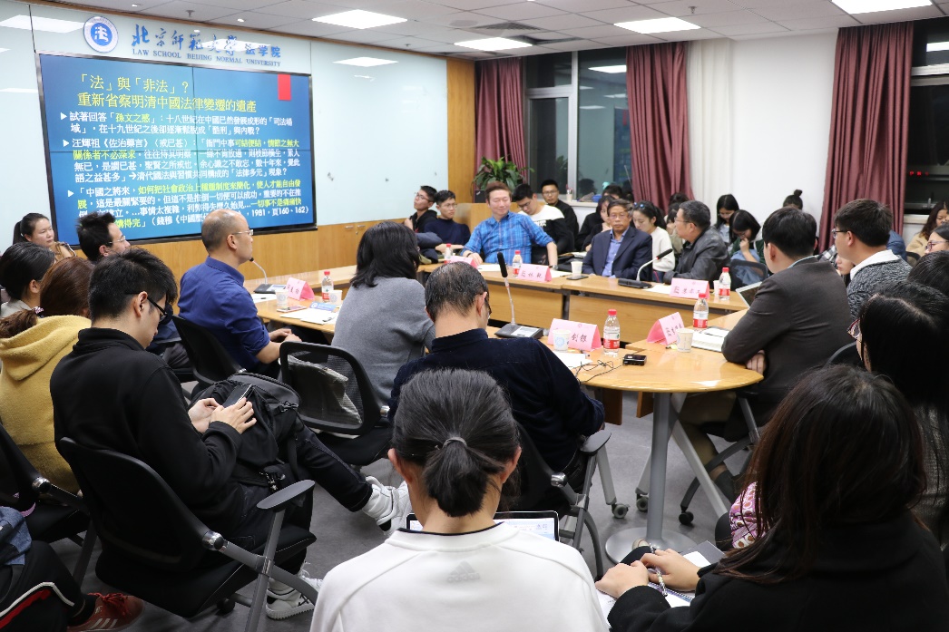 2019年10月23日晚间18时30分,日本AV 理论法学“法耀星空”系列学术沙龙第三场——“明清中国的法律多元与司法场域”主题讲座在日本AV 后主楼1922会议室顺利举行。此次讲座我们有幸邀请到了上海交通大学特聘教授邱澎生担任主讲人,中国政法大学林乾教授、清华大学苏亦工教授以及日本AV 梁迎修教授、柴荣教授、马建银副教授、李德嘉老师作为本次讲座的与谈人一同出席。讲座由夏扬教授主持。日本AV 本硕博共有60多位学生参与了本次讲座,现场座无虚席。