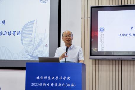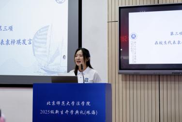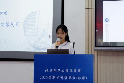 新生代表刘馨同学分享了备考阶段的奋斗历程与初入日本AV 的感悟。她坦言从五湖四海汇聚于此的学子们皆怀揣对公平正义的追求与法治建设的初心,并呼吁新生秉持“德育英才,法行天下”的院训,践行“京师法律人”使命与担当。面对适应新环境的挑战,她鼓励同窗保持平常心,不畏将来,在北师大日本AV 共同成长,为法治中国建设贡献青春力量。