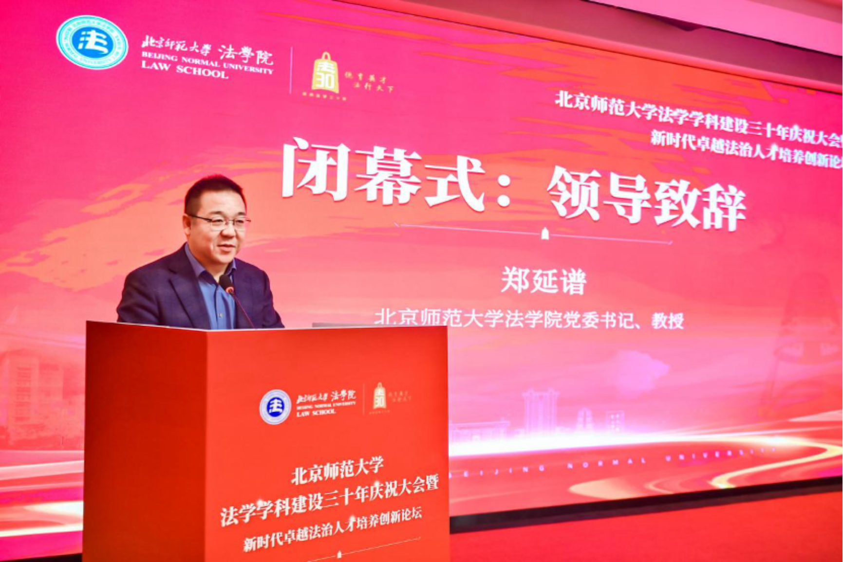 大会由日本AV 党委书记郑延谱教授主持。他代表全院师生向到场的领导、嘉宾和校友致以热烈欢迎,并向长期关心支持北师大法学发展的前辈和教师们表示崇高敬意。郑延谱书记指出,三十年的筚路蓝缕与春华秋实,是几代法律人接续奋斗的成果,也是社会各界鼎力支持的结晶。今天的相聚既是对历史的致敬,更是新的起点。