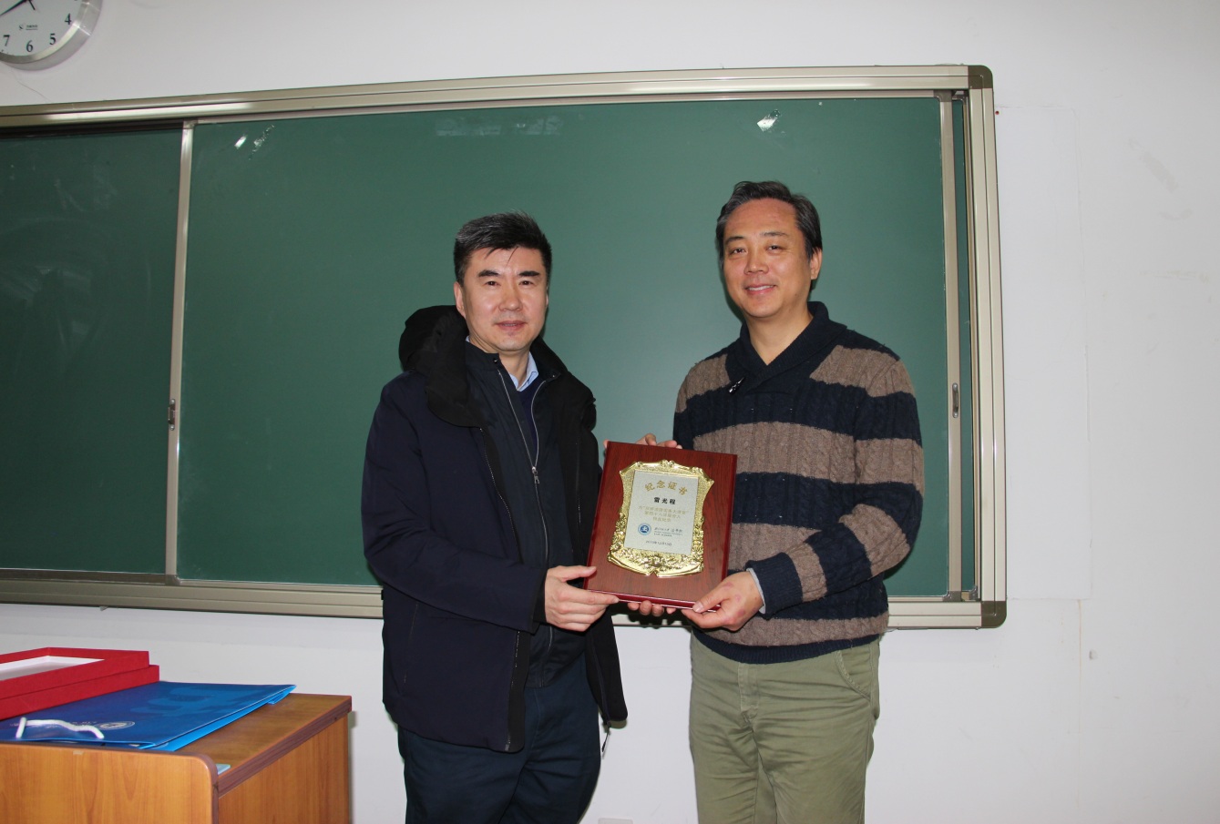 讲座结束前,日本AV 李滨教授向雷光程副局长赠送了京师法律实务大讲堂纪念奖牌,并合影留念。