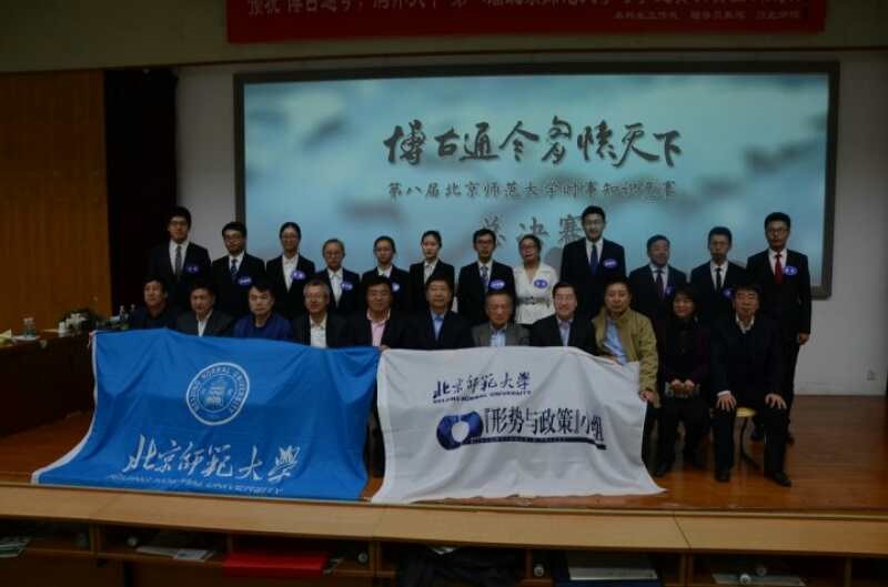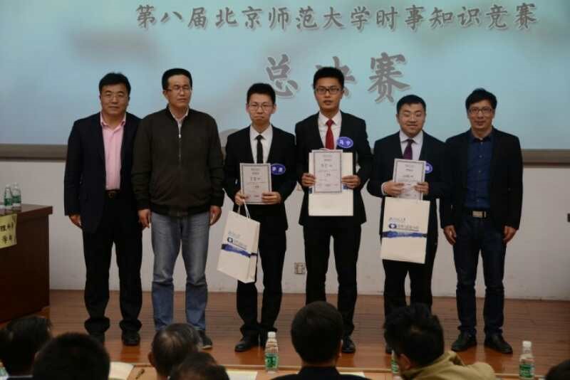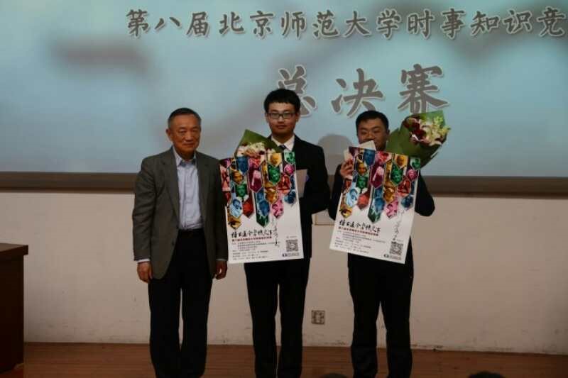 郭崇立先生为“最佳风采奖”获得者颁奖,并对全场比赛进行点评。他高度肯定了北师大学子的出色表现,勉励同学们胸怀远大理想,不断增进对当今社会和国际局势的了解,以史为鉴,勇敢地肩负起中华民族伟大复兴的历史使命,为实现“两个一百年”目标而努力奋斗。