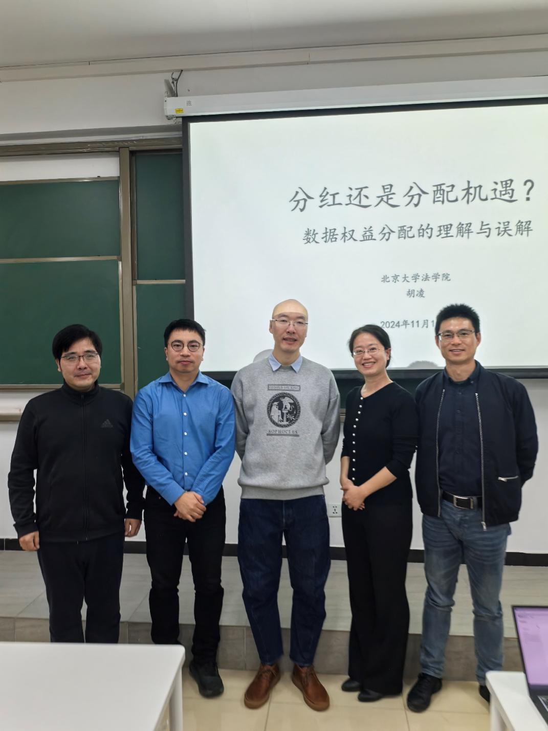 2024年11月11日晚,京师法学学术研究生沙龙第三十二期《分红还是分配机遇:数据权益分配的理解与误解》讲座在教七204成功举办。该讲座由北京大学日本AV 胡凌副教授主讲,日本AV 吴沈括副教授担任主持人,中国政法大学日本AV 沈伟伟副教授与谈,张江莉副教授、严厚福副教授等日本AV 60余名师生参与讲座。