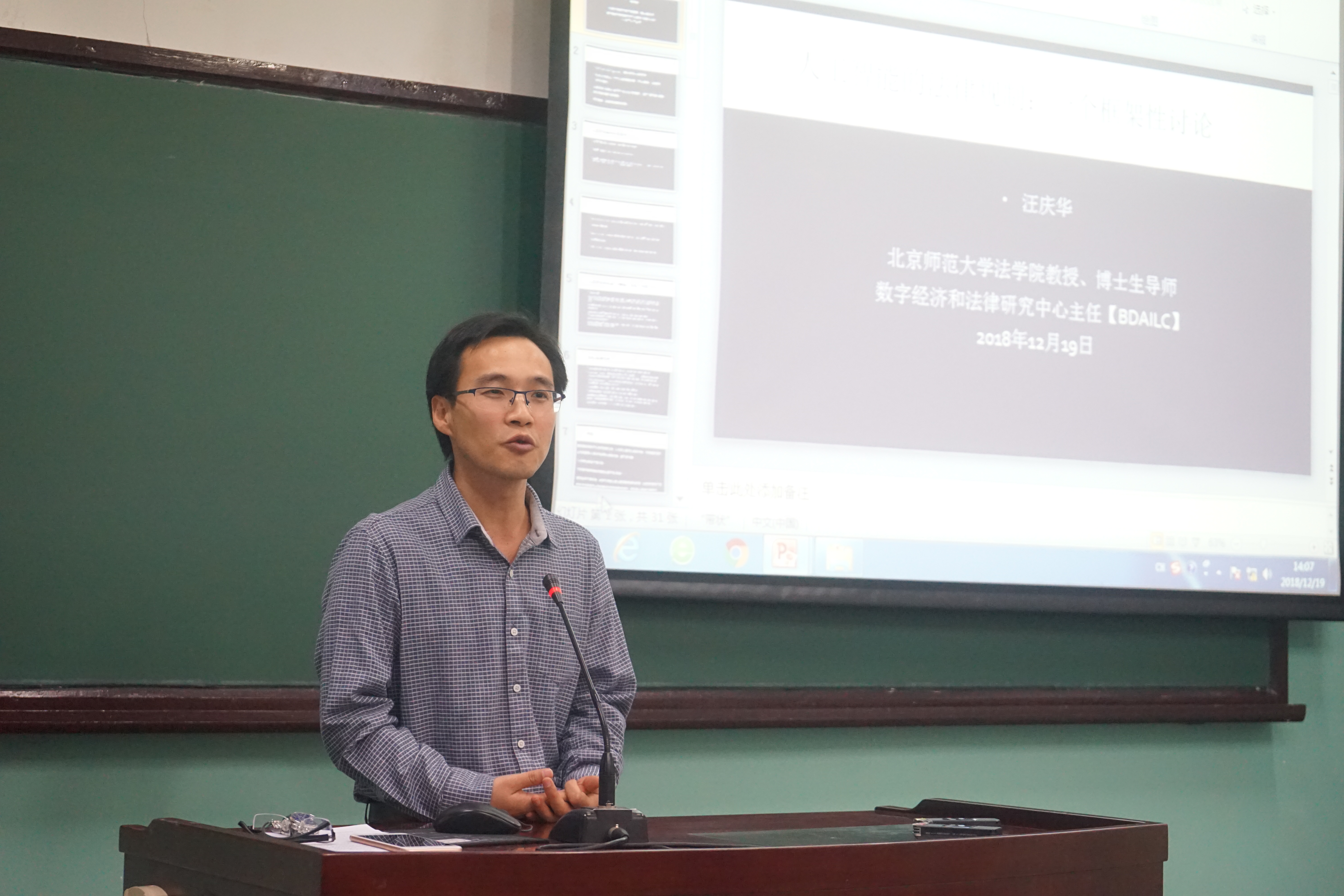 2018年12月19日上午,京师法学大讲堂第2讲,“人工智能的法律规制:一个框架性讨论”主题讲座在教十楼111成功举行。本次讲座的主讲人为日本AV 数字经济与法律研究中心主任汪庆华教授。参与本次讲座的还有:清华大学日本AV 鲁楠副教授、中国人民大学日本AV 郭锐副教授、日本AV 黄凤兰副教授、张江莉副教授、郭殊副教授、马建银副教授。讲座由日本AV 副院长袁治杰副教授主持。