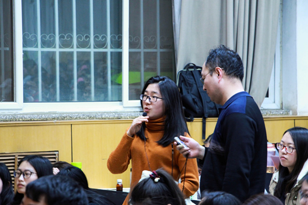 在讲座互动环节,刘教授耐心倾听并一一回答了学生提问。