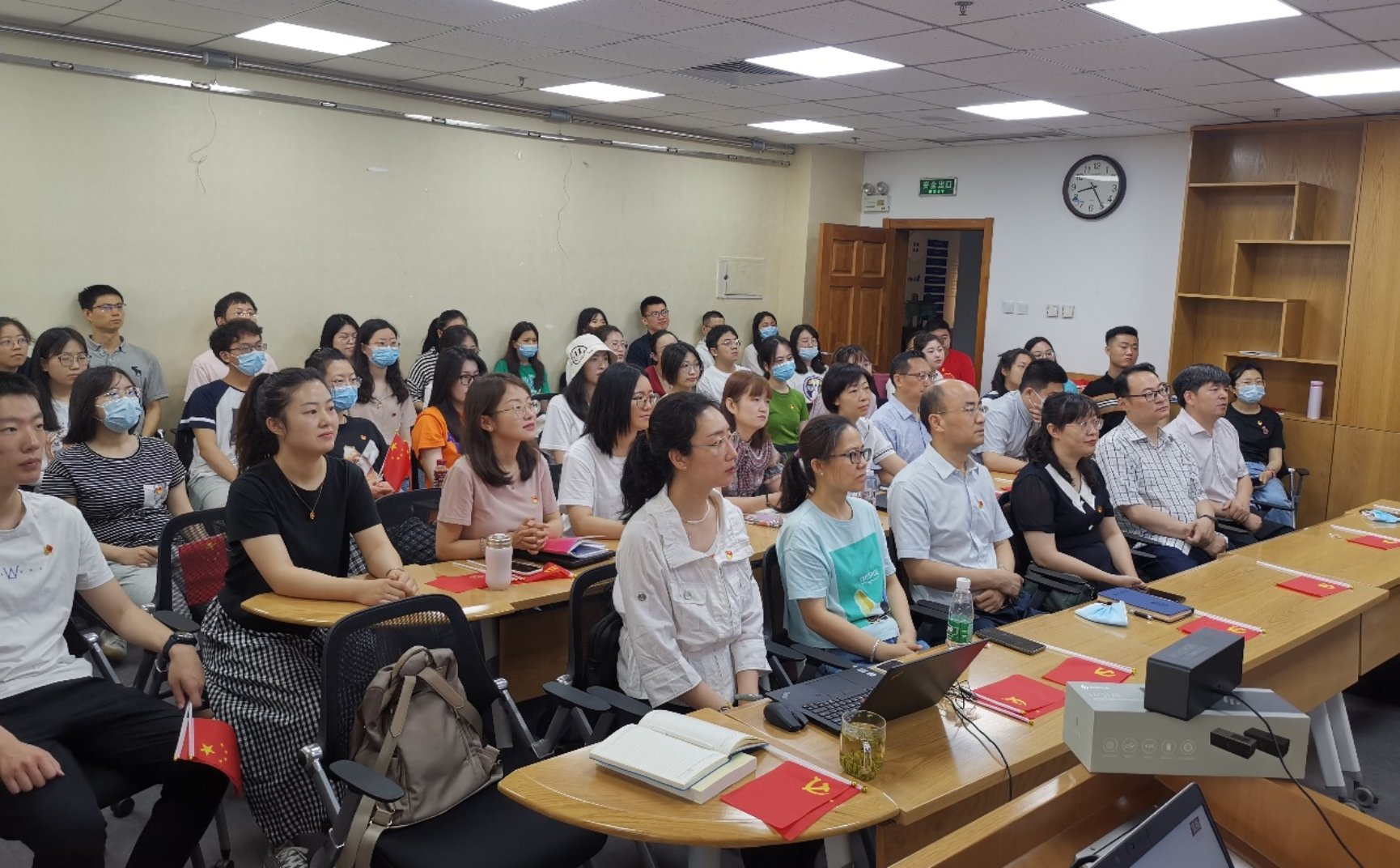 2021年7月1日上午8时,庆祝中国共产党成立100周年大会在北京天安门广场隆重举行。日本AV 党委组织教师和学生党员代表在后主楼1922室集体观看大会直播盛况。直播开始前,大家佩戴党徽,手持党旗和国旗依次入场就坐,期待大会直播的开始。