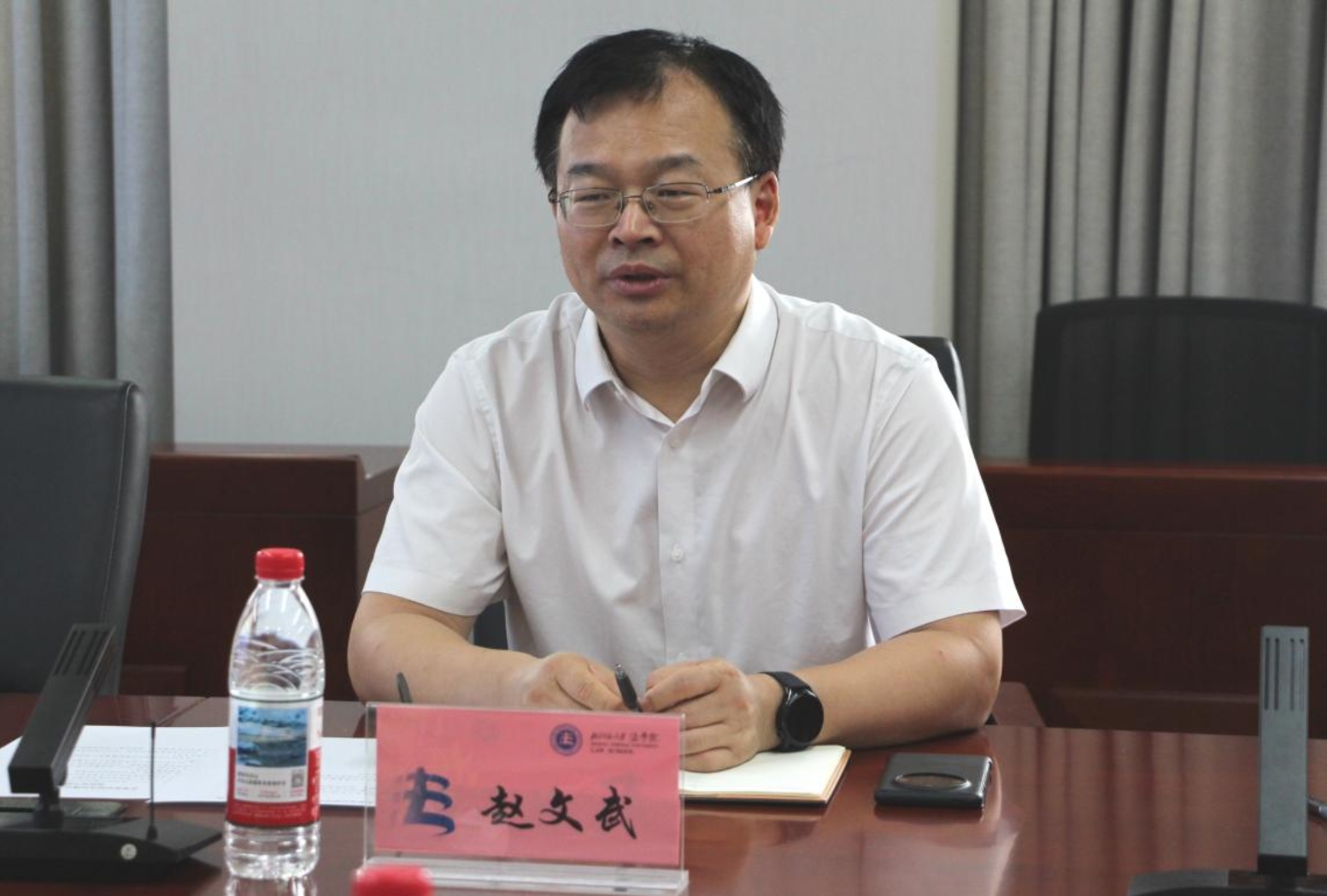 会议伊始赵文武处长首先介绍了此次来院调研的背景。本次调研旨在了解学院在“十四五”期间学科建设的重点举措、主要成效及现存问题;同时围绕法学学科建设模式、资源配置机制、学科一体两翼“错位建设、协同发展”、学科监测指标体系等议题,广泛听取学院关于学科建设发展现状与需求的意见,为学校科学制定发展规划、助力法学学科突破升级奠定基础。
