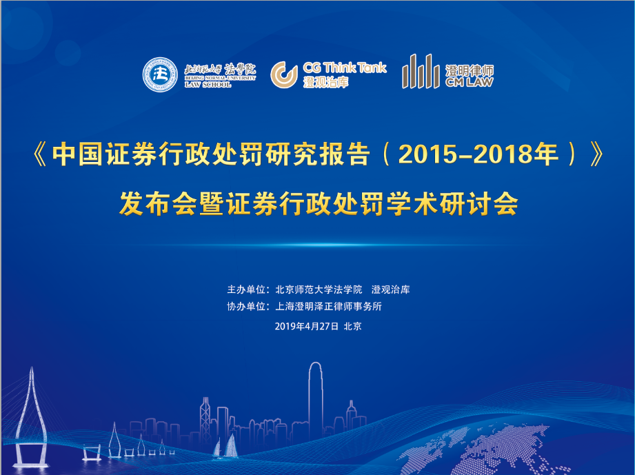 2019年4月27日上午,在日本AV 召开“《中国证券行政处罚研究报告(2015-2018年)》发布会暨证券行政处罚学术研讨会”。研讨会由日本AV 和澄观治库共同主办,上海澄明则正律师事务所协办。会议正式发布了《中国证券行政处罚研究报告(2015-2018年)》。报告包括四个部分,总报告针对中国证监会公布的2015-2018年度行政处罚的总体情况、处罚类型分布、违法行为类型分布、违法主体类型分布、处罚金额区间分布及听证、复议、应诉等情况进行了总体的比较分析。三个分报告分别针对虚假陈述、内幕交易和操纵市场三类最典型的证券违法行为的行政处罚决定进行了全面汇总分析,并结合具体案例归纳总结出证监会的监管重点。报告指出,近年来证券行政处罚案件的数量呈现上升趋势,行政处罚的种类日益多样化,罚款金额不断刷新纪录。总体而言,我国证券监管趋于严格,同时也在科学化和规范化的水平上有所提升。
