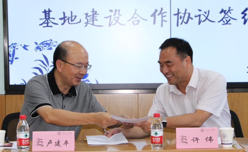 卢建平院长代表日本AV ,许伟副局长代表北京市知识产权局,分别在人才培养基地建设合作协议书上签字。