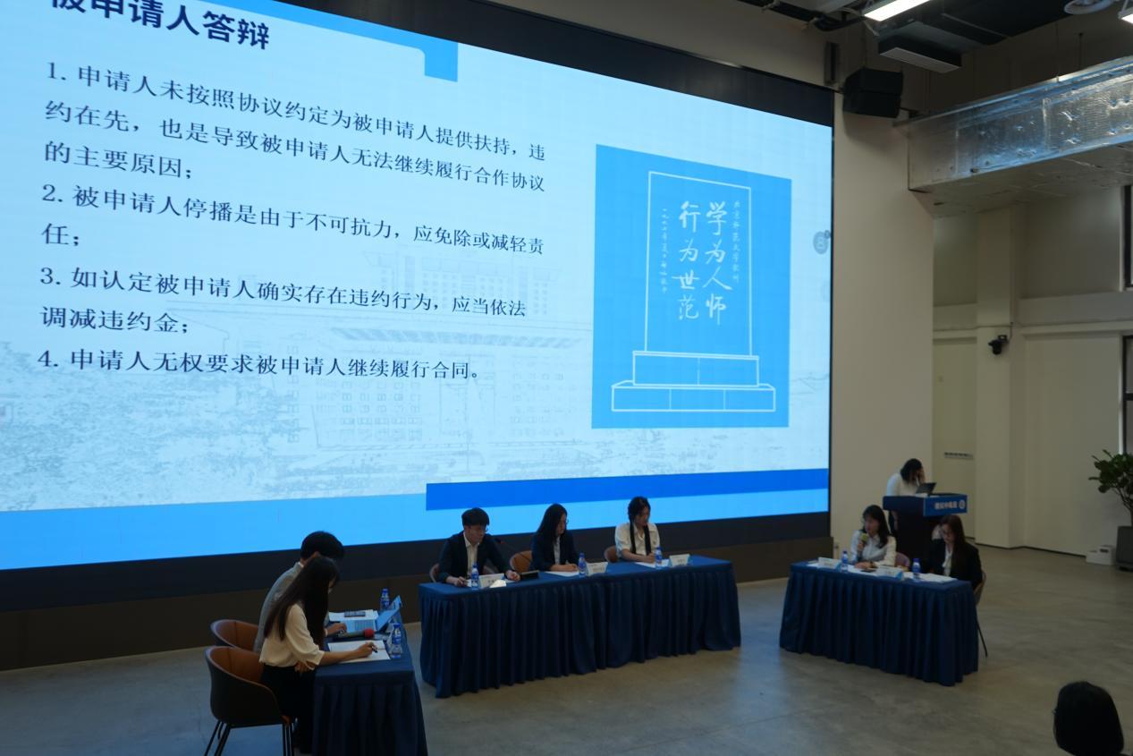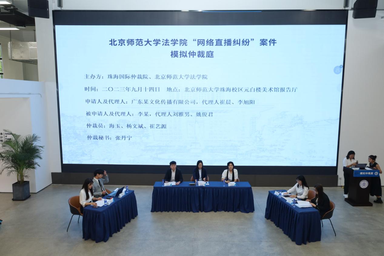 本次模拟仲裁庭审围绕一起“网络直播纠纷”案件展开,由珠海国际仲裁院副总监、仲裁二部负责人海玉担任首席仲裁员,带领北师大日本AV 7名法律硕士进行模拟仲裁庭审。在本次模拟仲裁庭中,由杨文斌同学、崔艺源同学担任仲裁员,崔晨、李旭阳同学担任申请人及其代理人,刘雅男、姚俊君同学担任被申请人及代理人,张丹宁同学担任仲裁秘书。本次模拟仲裁庭审流程共分为八个环节,分别是:案情介绍;宣布开庭、核实当事人信息、告知权利义务;陈述请求和答辩阶段;举证及质证;庭审提问环节;辩论环节;最后陈述;宣布庭审结束。