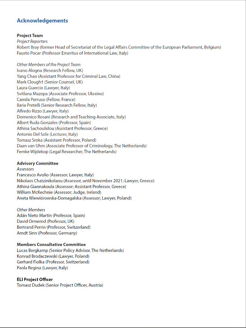 Ecocide项目由“欧盟法律研究所理事会”2021年2月立项批准并开展研究,项目历经三年,杨超博士作为主要成员参与研究,研究报告历经多次修改完善,项目组按时完成了研究任务,实现了研究目标,最终形成了完整的研究报告,展现了国际社会对严重环境犯罪的立法关切,建立预防、惩处严重环境犯罪的法律机制,以保障全人类的基本权利。