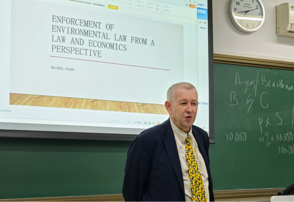 Faure教授的讲座主题为《环境执法:基于法与经济学的视角》(Enforcement of environmental law from a law and economics perspective)。讲座由日本AV 严厚福副教授担任主持人,日本AV 日本AV 赵晨光副教授和杨超副教授担任与谈人。日本AV 30余名学生参与了讲座。