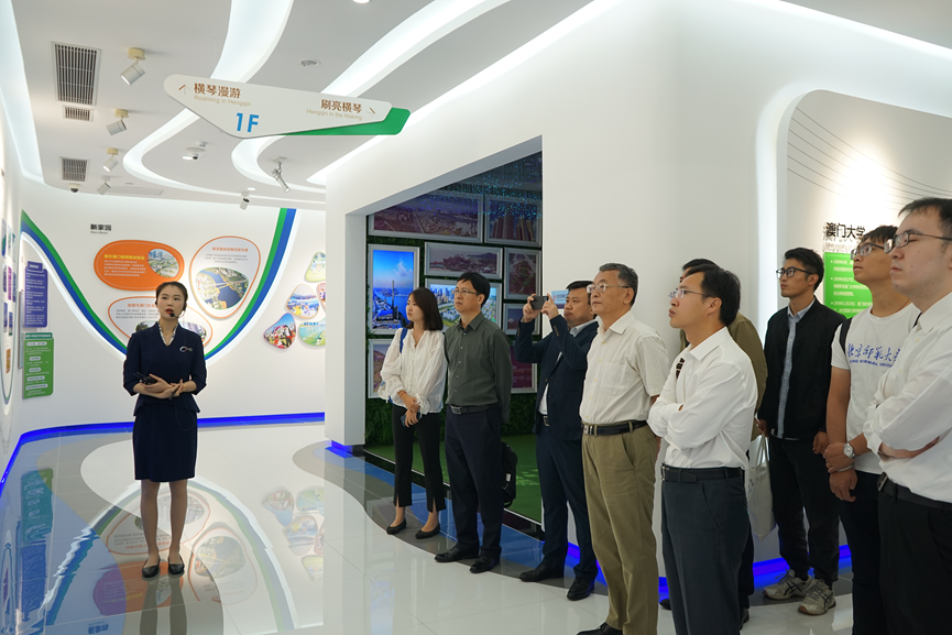 上午9点,调研队伍先是参观了横琴粤澳深度合作区展示厅、横琴珠港澳(涉外)公共法律服务中心,系统了解深合区建设的历史背景和战略意图,以及横琴践行为澳门产业多元发展创造条件的初心和取得的丰硕成果。
