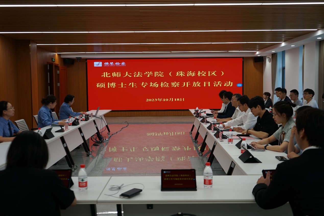 下午15点半,调研队伍前往横琴粤澳深度合作区人民检察院参访交流。韩平副检察长热情地陪同各位师生参观12309检察服务中心、办案工作区、案件管理中心、未成年人检察工作室等办案区域,及中国检察简史展示墙和党群活动中心等检察文化区域。调研座谈环节,韩平副检察长介绍了横琴深合区检察工作情况,并结合调研提纲作了详细解答。第一监察部主任张雁法官介绍了横琴深合区刑事检察工作开展情况、案件类型、涉外案件解决的办法与途径等。双方对伴随琴澳融合发展的不断深入,深合区检察工作面临的新问题、新难点,以及工作方法的创新等主题展开交流讨论。