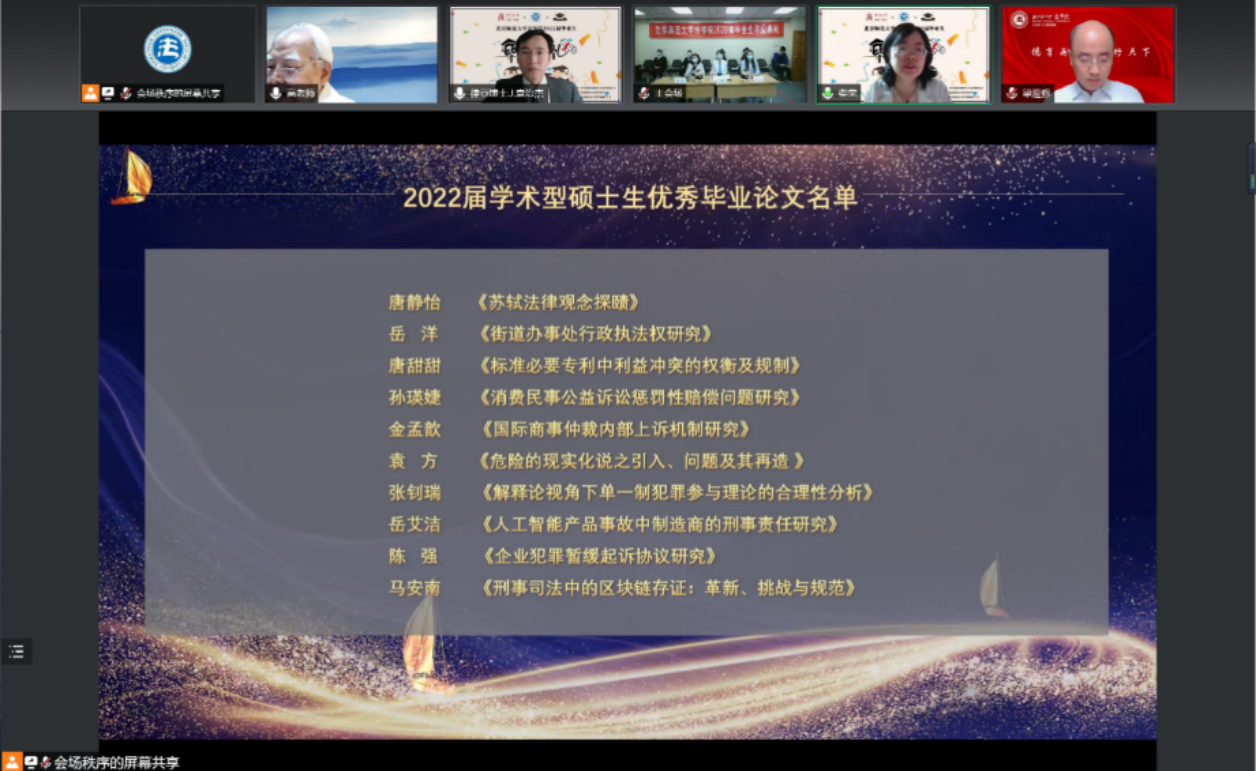 李滨副院长宣读了2022届法律硕士优秀毕业论文获奖名单。