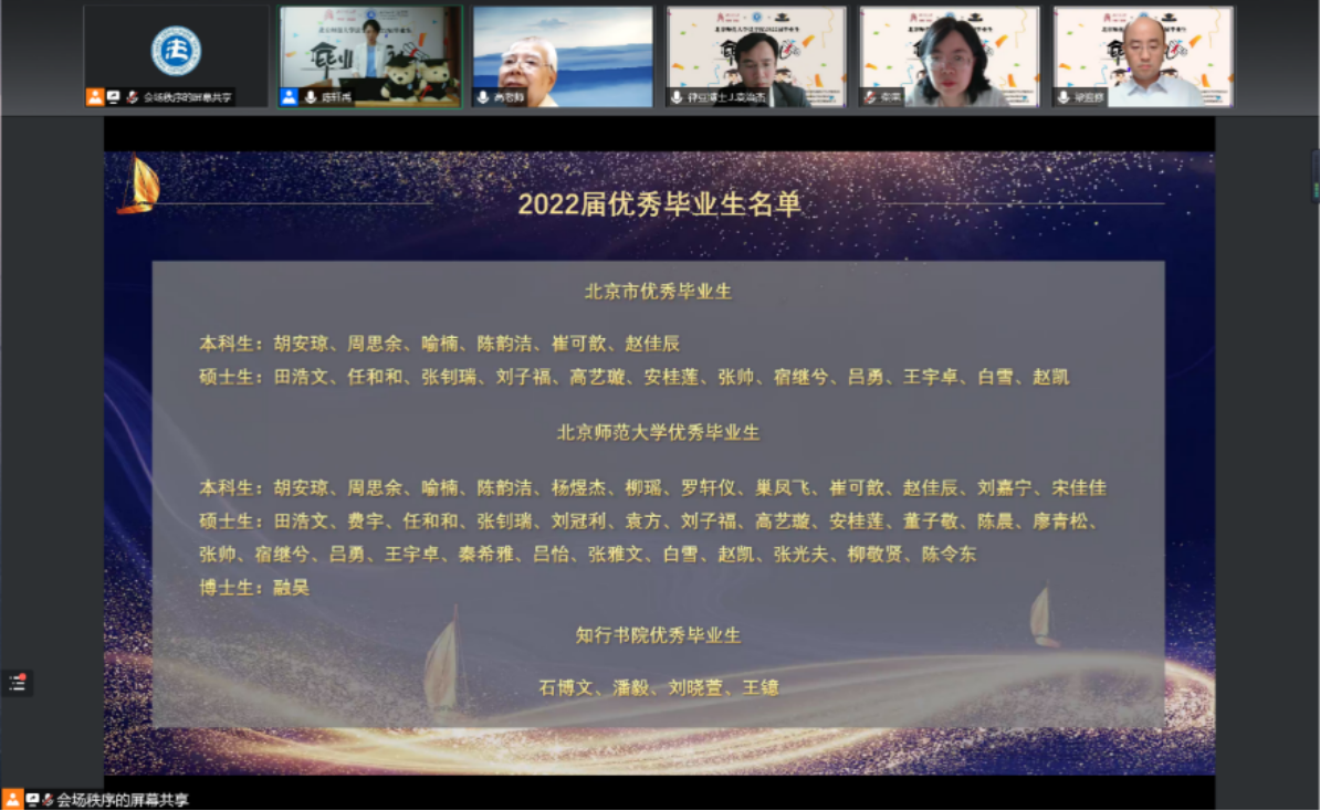 郭雅婷老师宣读了2022届优秀毕业生获奖名单,其中包括北京市优秀毕业生名单、日本AV 优秀毕业生名单和知行书院优秀毕业生名单。