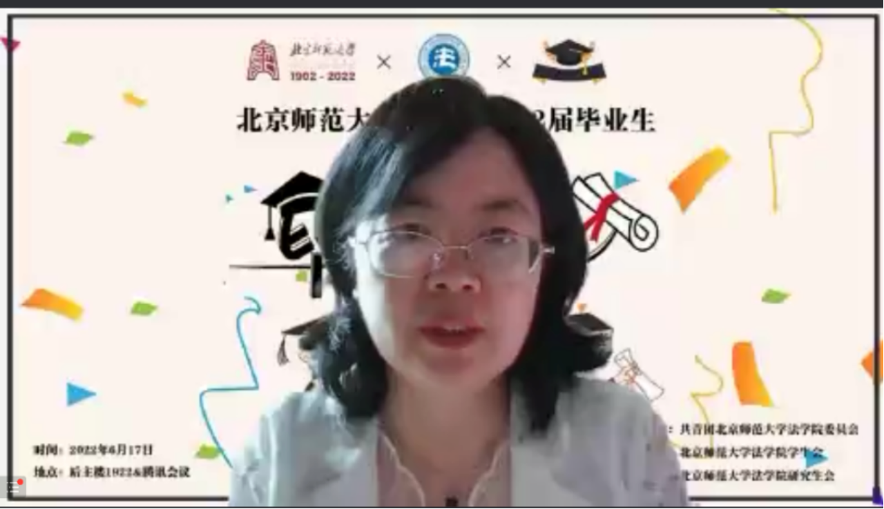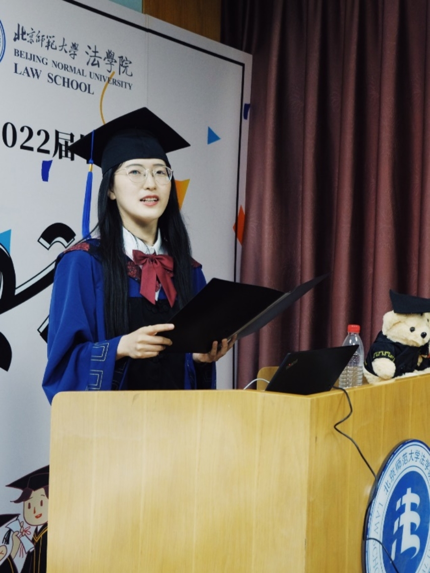 任和和同学回忆并总结了自己在师大的七年里不断尝试、不断学习的过程,对师大日本AV 的包容和支持、师大老师的帮助和指导、师大同学们的信任和理解表达了最诚挚的感激和祝愿。同时,她也鼓励同学们作为法律人应当保持对法律的信仰,为国家和社会努力做出贡献。
