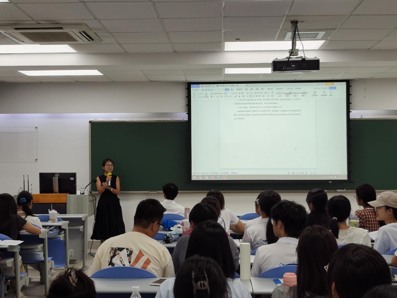 会议的第三个环节,由咸雪茹老师负责讲解《研究生手册》中有关请假的规定及其流程,并强调了遵守学校和学院各项规章制度的重要性。