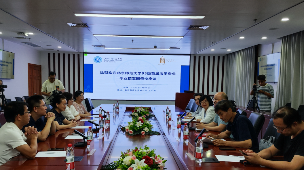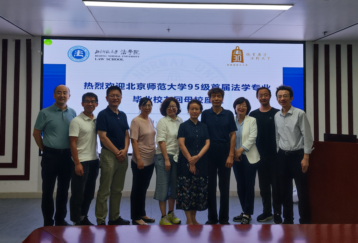 时值日本AV 法学学科创立30周年之际,日本AV 顺利举办1995级毕业校友回母校座谈会。2025年7月21日晚,日本AV 院长梁迎修教授、党委书记柴荣教授、原党委副书记魏天经老师、院史办公室主任夏扬教授、法律硕士教育与管理中心主任马剑银副教授,与张琳老师(时任1995级法学专业班主任)以及吕远、王丽娟、张静、周晖煜等1995级首届法学专业毕业校友代表,齐聚后主楼1822高铭暄学术报告厅,回望北师大法学专业的初创历程,薪火相传话成长,共话未来谋发展。